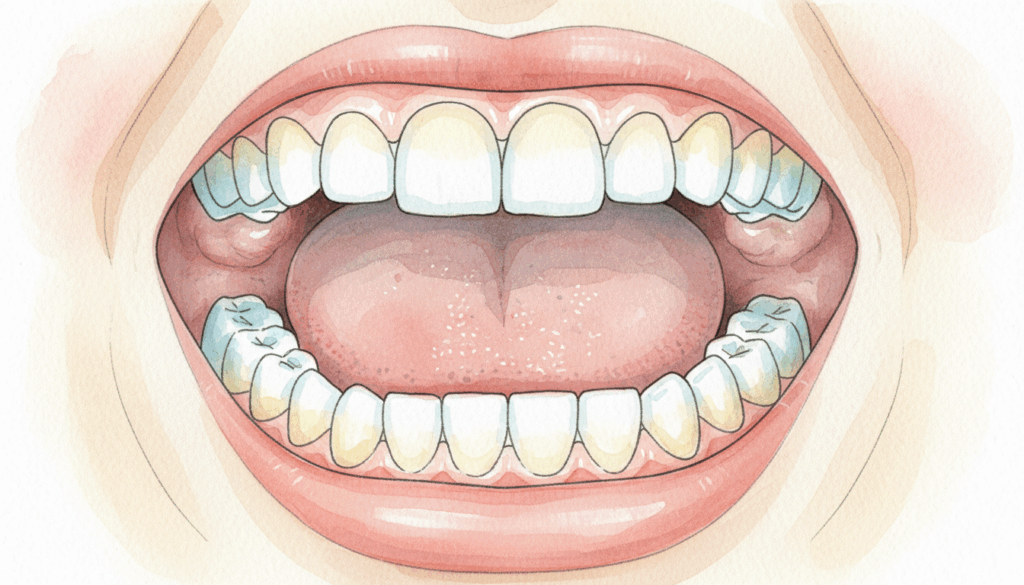 この舌癖は、一見些細な癖に見えるかもしれません。しかし、食べ物を飲み込むたびに繰り返されることで、歯や顎の骨に持続的な力が加わり続けます。成長期のお子さんにとって、この継続的な圧力は歯並びや顎の発育に深刻な影響を及ぼす可能性があるのです。
