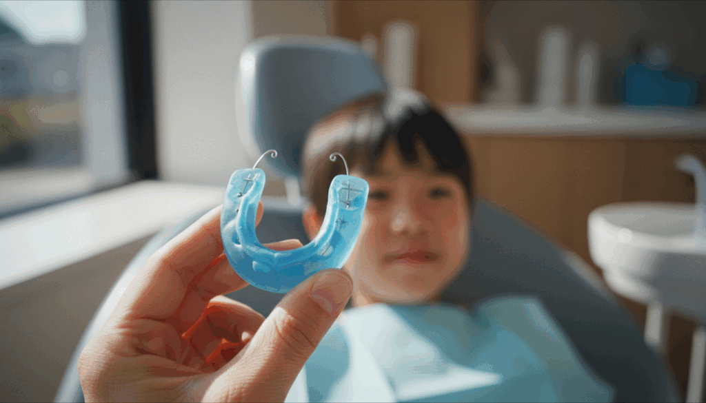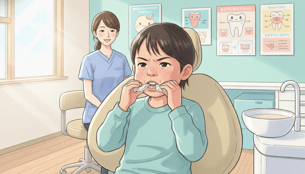 歯列矯正用咬合誘導装置(マイオブレース)は、舌癖や口呼吸などの悪習慣を改善するための装置です。